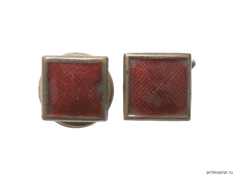 Два эмалевых кубика на петлицы. В очень хорошем состоянии, эмаль со следами ношения, но без сколов. На закрутке одного из кубиков - надпись: "С.Красное П.Колхоз".