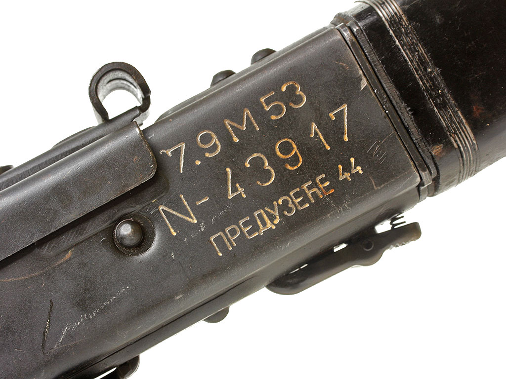 Единый пулемет М-53 - практически точная копия германского пулемета МГ42, изготовленный в Югославии. Очень хорошее складское состояние, оригинальное воронение. В комплекте с лентой, набитой деактивированными патронами.