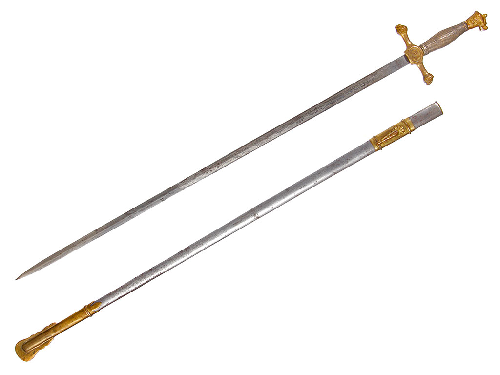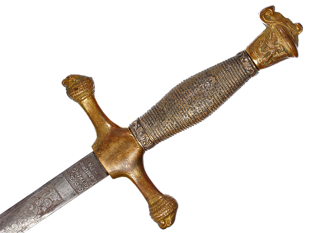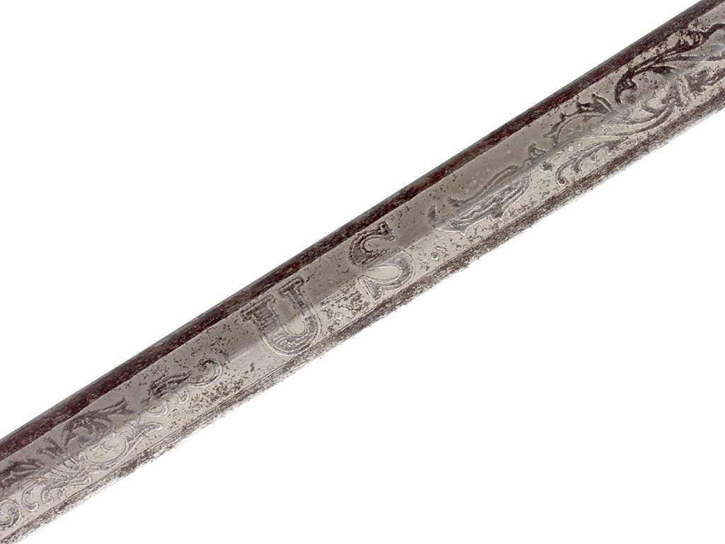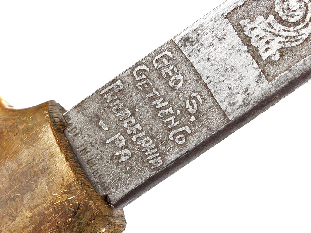 Шпага курсанта военно-учебного заведения, изготовленная в конце ХIХ века. Клинок прямой, ромбического сечения, с травленым клеймом на пяте клинка "Geo. S. Gethen Co / Philadelphia - PA". С обеих сторон клинок на две трети длины украшен травленым растительным и геометрическим орнаментом с помещенными в центре изображениями орла и аббревиатуры "U.S.". Рукоять имеет металлический черен с имитацией оплетки. Прибор рукояти латунный, состоит из навершия с изображением американского орла и прямого перекрестия с расширяющимися концами, имеющими завершения в виде львиных голов. Ножны металлические, с латунным устьем (имеющим с лицевой стороны крюк для подвеса) и башмаком. Все латунные элементы рукояти и ножен позолочены.