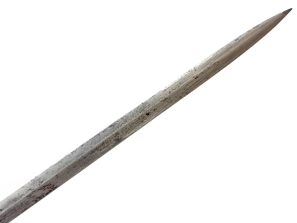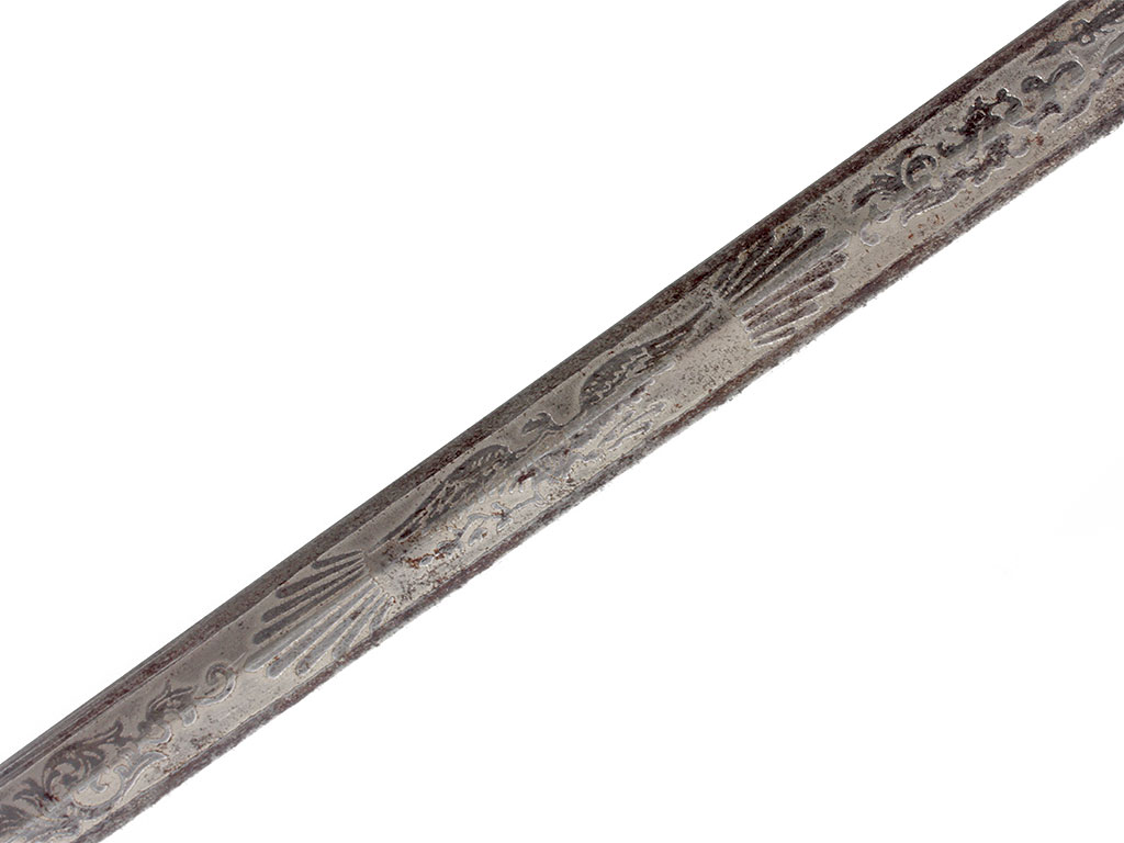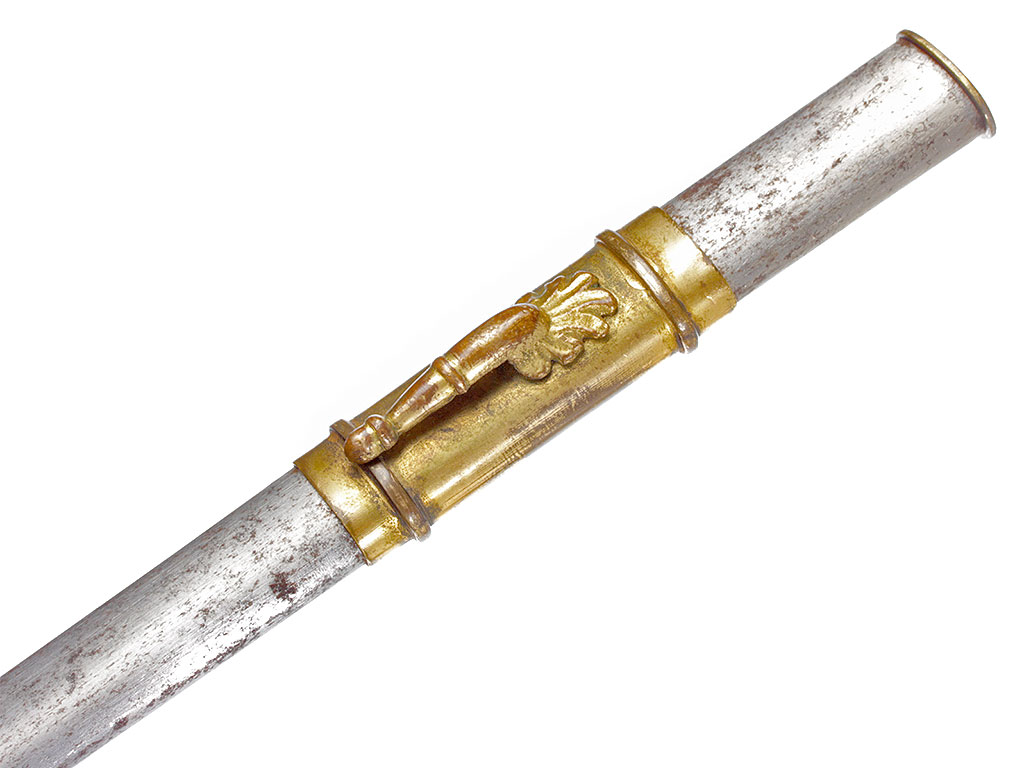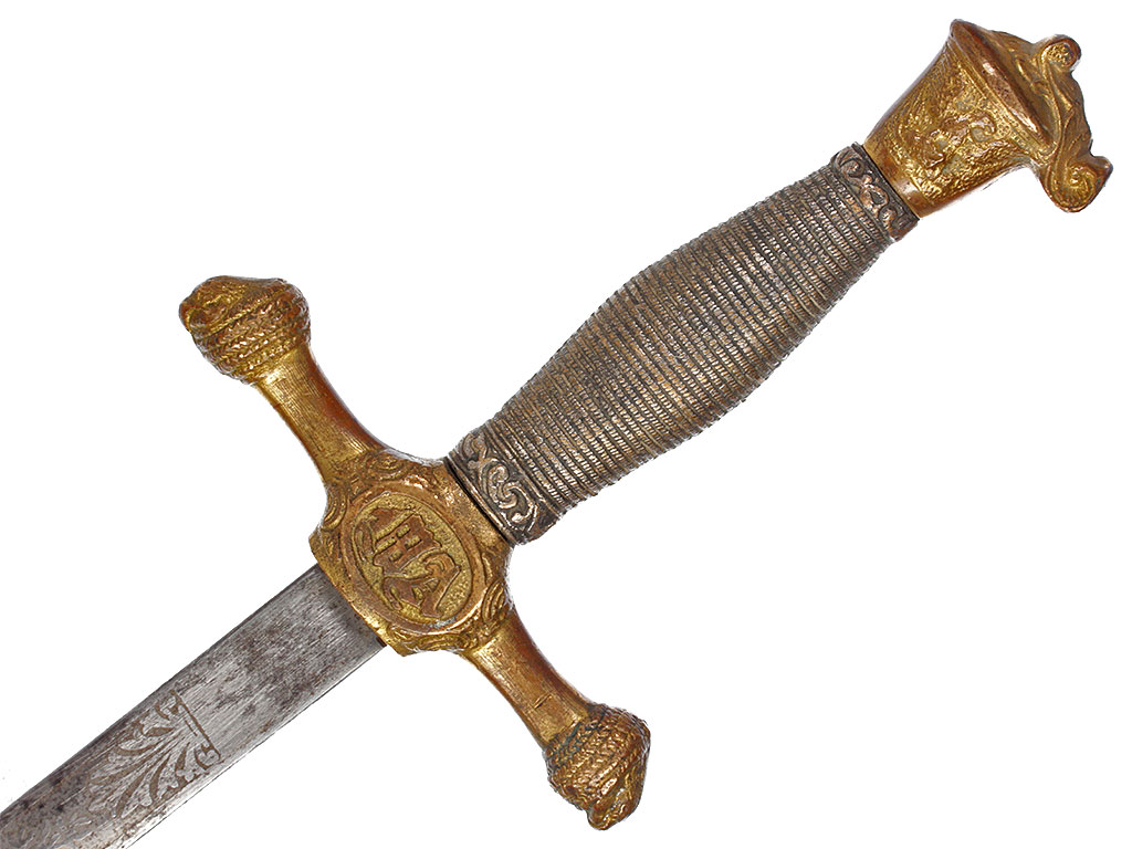Шпага курсанта военно-учебного заведения, изготовленная в конце ХIХ века. Клинок прямой, ромбического сечения, с травленым клеймом на пяте клинка "Geo. S. Gethen Co / Philadelphia - PA". С обеих сторон клинок на две трети длины украшен травленым растительным и геометрическим орнаментом с помещенными в центре изображениями орла и аббревиатуры "U.S.". Рукоять имеет металлический черен с имитацией оплетки. Прибор рукояти латунный, состоит из навершия с изображением американского орла и прямого перекрестия с расширяющимися концами, имеющими завершения в виде львиных голов. Ножны металлические, с латунным устьем (имеющим с лицевой стороны крюк для подвеса) и башмаком. Все латунные элементы рукояти и ножен позолочены.