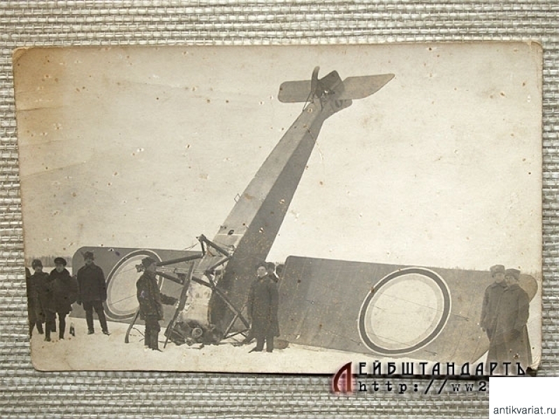 Редкая фотография аварийной посадки русского военного аэроплана, сделанная во время Первой мировой войны. На обороте указаны дата и место происшествия - Гатчина, 17 января 1917 года. Фотографии аэропланов и летчиков Русской армии практически не встречаются.