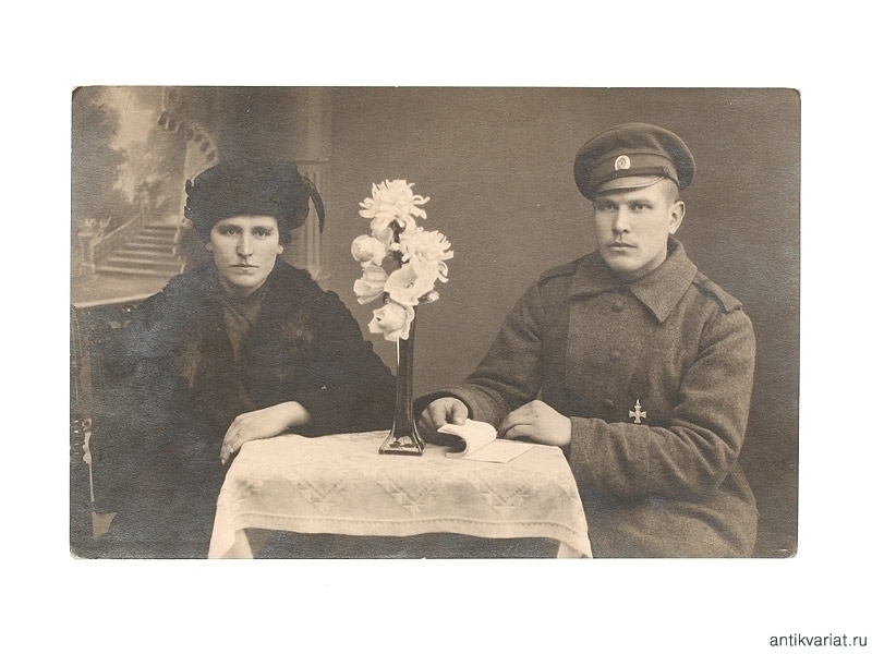 Фото ефрейтора - кавалера Георгиевского креста 4 степени с сестрой. Размер: 9 х 13 см.