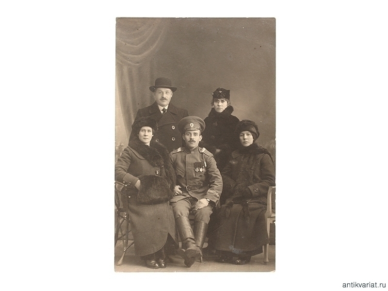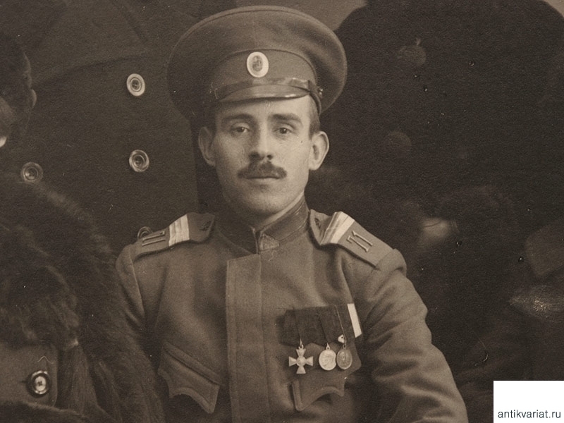 Фотография старшего унтер-офицера 71 пехотного полка с семьей, награжденного Георгиевским крестом и медалью, а также медалью "300 лет дому Романовых".