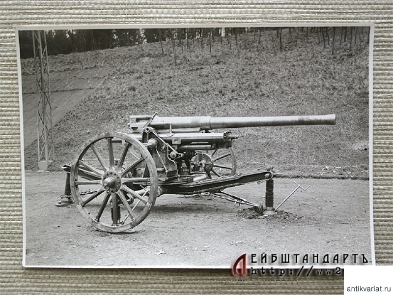 Фотография орудия времен Первой мировой войны. На заднем плане видны укрепления, скорее всего, для дальнобойной артиллерии. Снимок пронумерован, вероятно, входил в состав альбома.