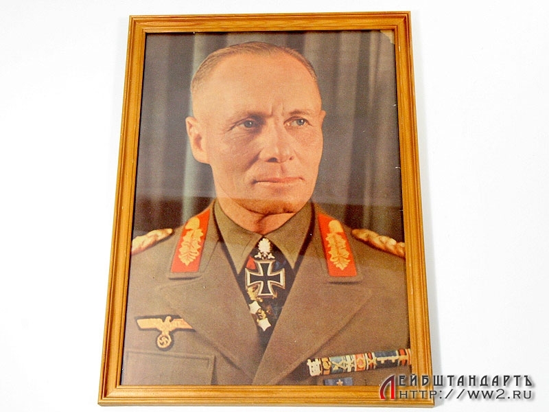 Большой цветной фотопортрет Роммеля, вырезанный, по всей видимости, из плаката тех лет. В современной раме. Размер 37 х 27,5 см.
