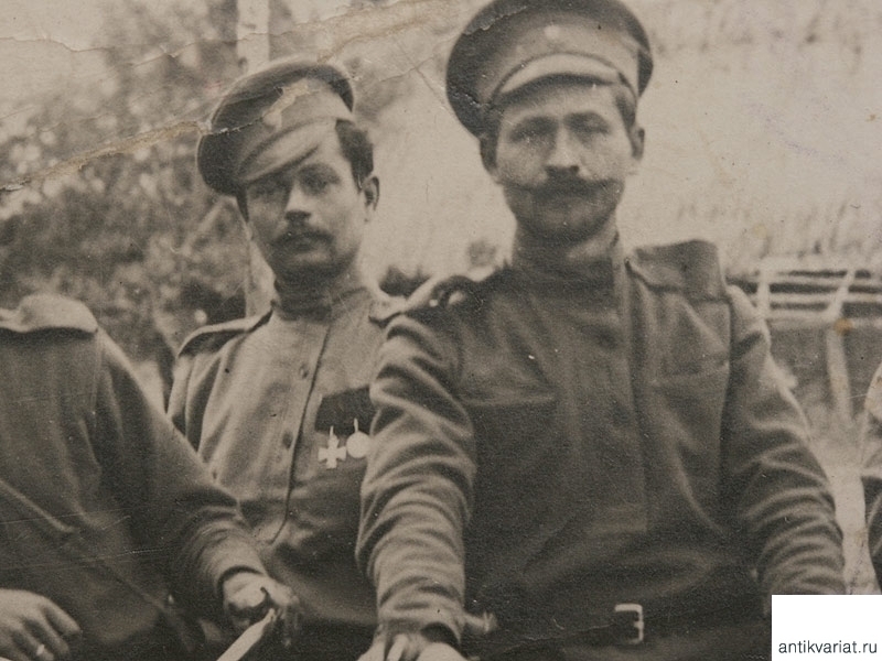 Фото армейских велосипедистов, у рядового на заднем плане хорошо виден Георгиевский крест и Георгиевская медаль. 1916 год.