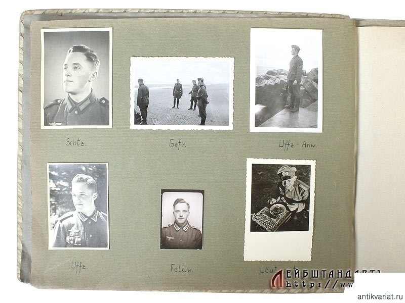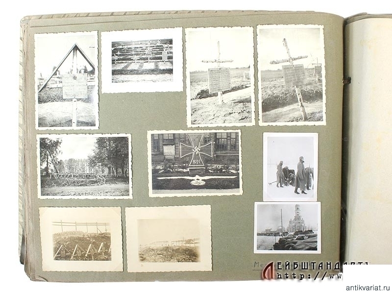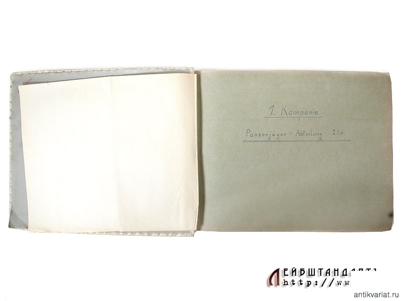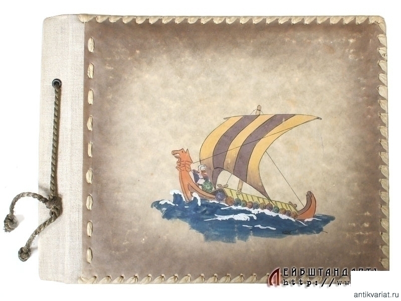 Красиво оформленный фотоальбом в память о службе в 1 батальоне 216 артиллерийского полка. В обтянутой пергаментом обложке с нарисованным изображением корабля викингов. Много групповых и индивидуальных снимков, а также рисованных схем пройденного боевого пути, в том числе и на Восточном фронте. Отличное состояние.