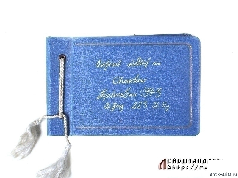 Миниатюрный фотоальбом в память о службе в 3 батальоне 223 пехотного полка. Судя по снимкам и подписям, служба этого солдата проходила большей частью в Харькове. Много групповых и индивидуальных снимков, встречаются городские и сельские пейзажи. Отличное состояние.