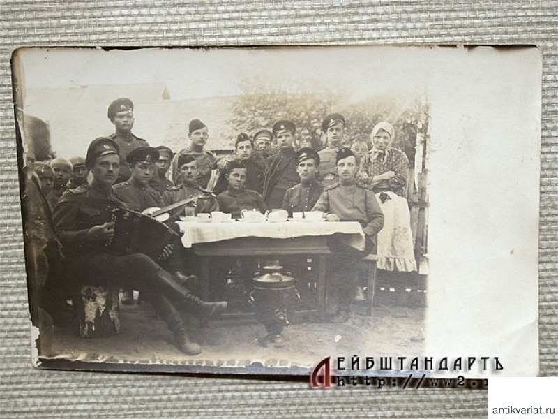 Групповая фотография русских военных летчиков времен Первой мировой войны, на котором хорошо видны различные варианты униформы. Редкий коллекционный снимок.
