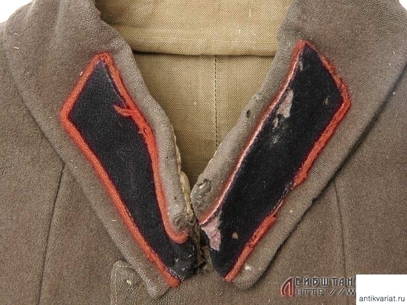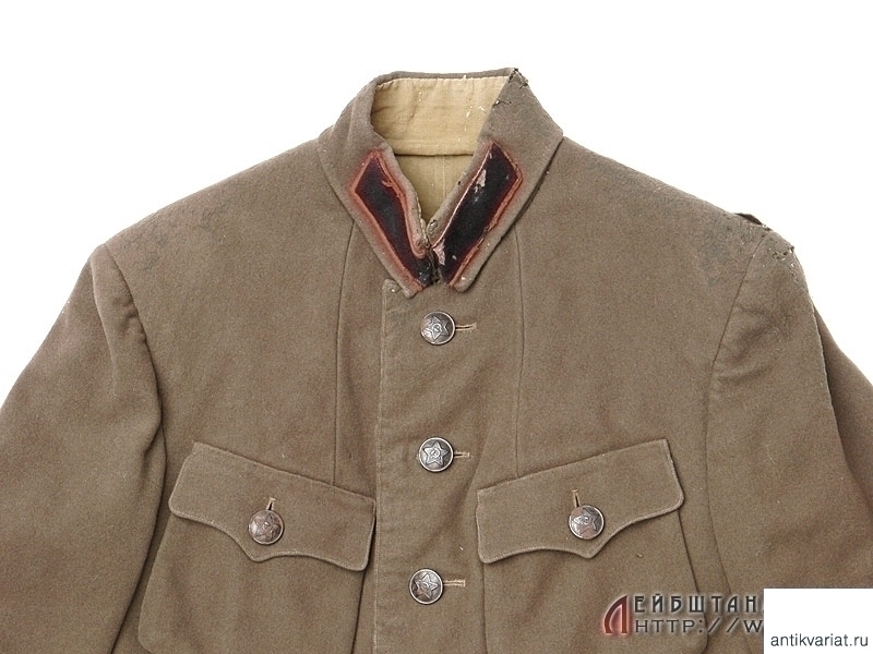 Ранний френч рядового артиллерии или автобронетанковых частей Красной Армии. Для своего времени неплохо сохранился, петлицы ч черным полем и красным кантом оригинально пришиты еще на фабрике во время его производства. Большие красивые оксидированные пуговицы фабрики "Тремасс". Размер 46-48.