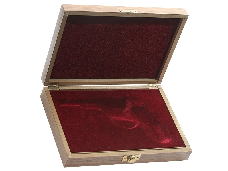 Деревянный футляр для экспонирования и хранения массо-габаритного макета револьвера системы Наган. Современного изготовления.