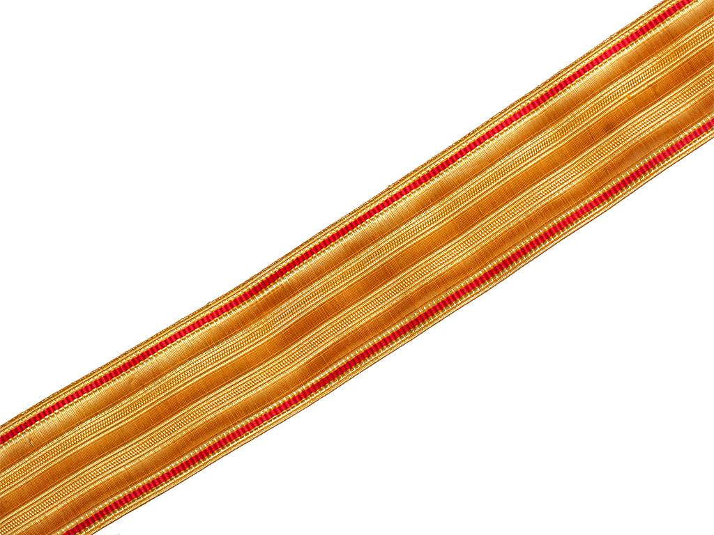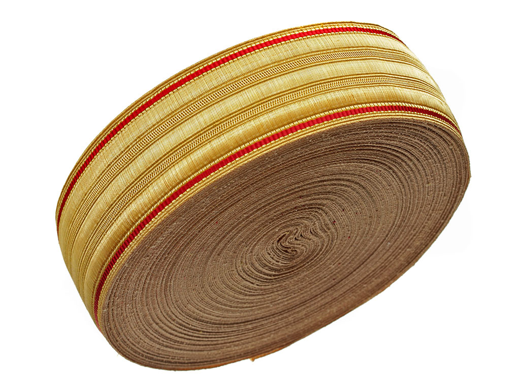 Золотой галун с тонким красным (алым) просветом, ширина галуна 35 мм.