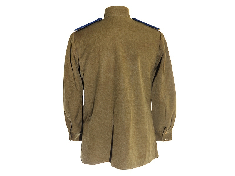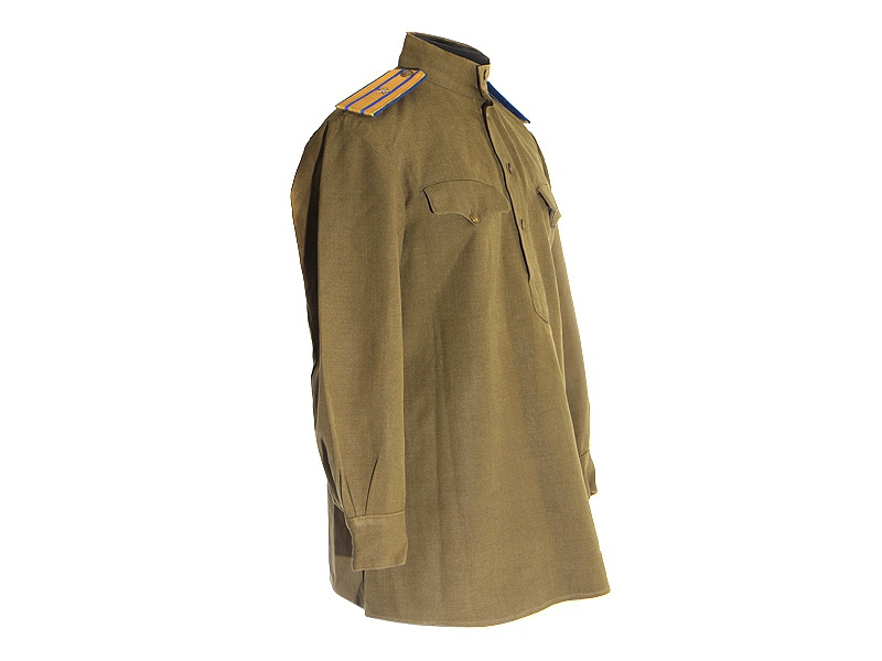 Полевая офицерская гимнастерка образца 1943 года. 1945-й год, пуговицы из пластмассы защитного цвета. Погоны майора НКВД с двумя васильковыми просветами, с васильковым подбоем. Отличное неношеное состояние. Размер примерно 50.