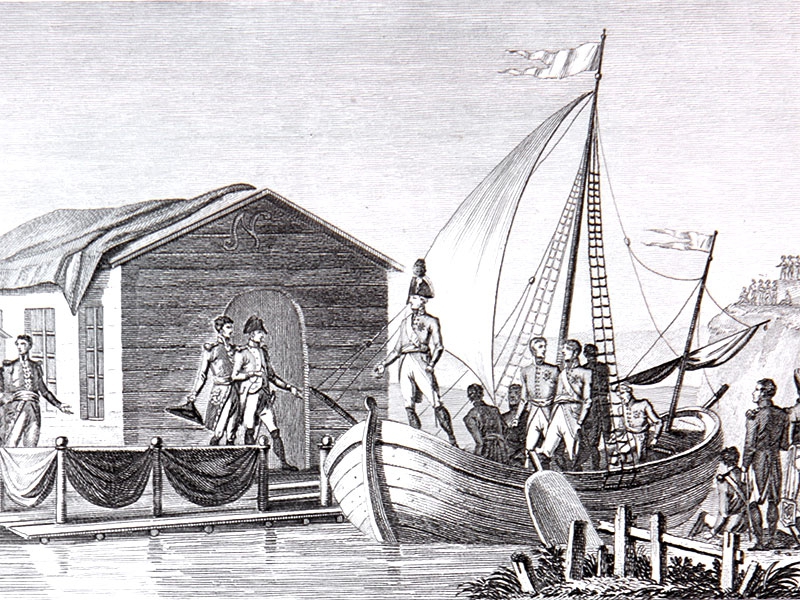 Гравюра на меди "Встреча императоров Франции и России в Тильзите", Франция