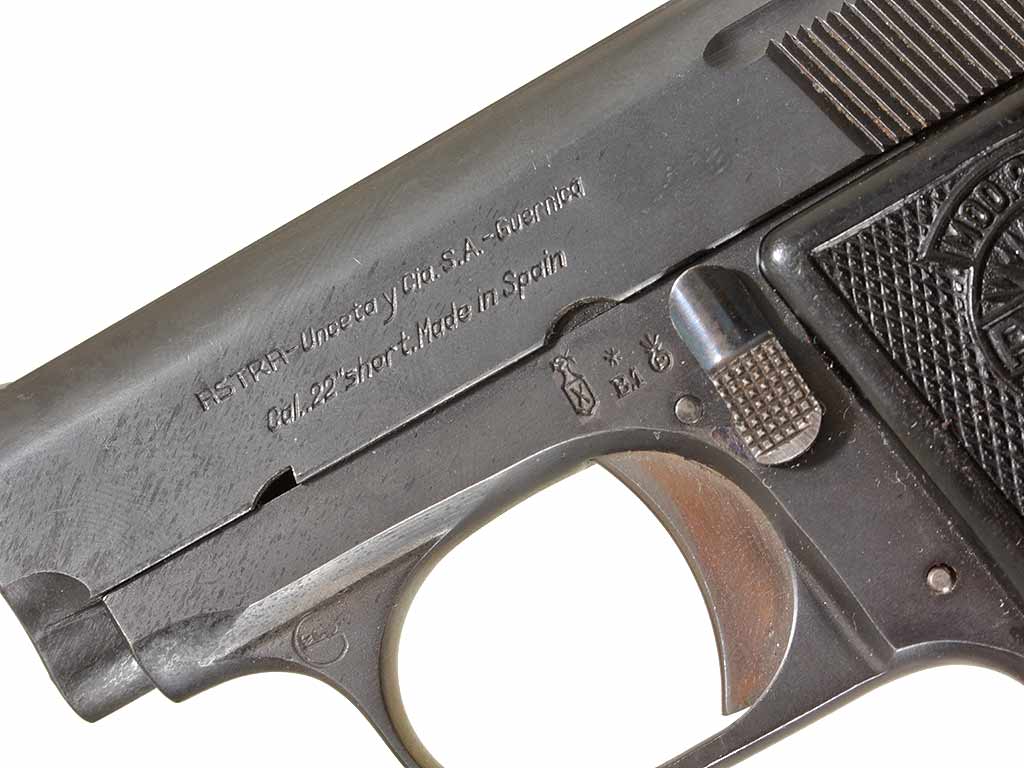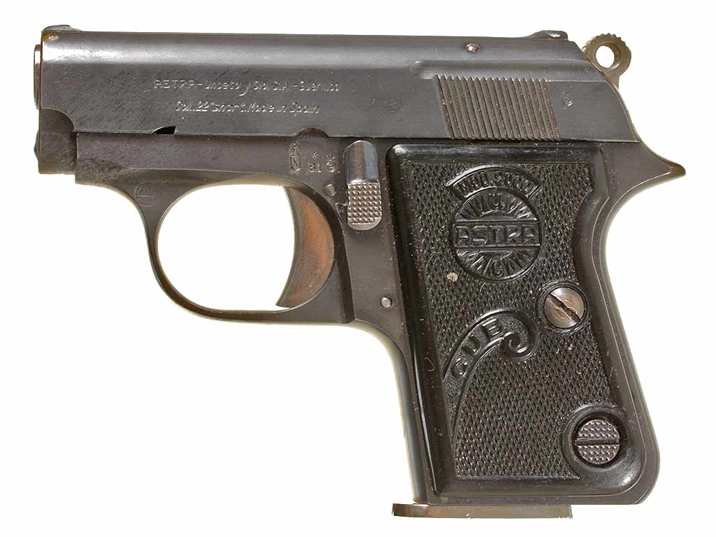 Небольшой карманный пистолет испанской фирмы Астра, модель "Каб" калибром 22" Short. Очень хорошее состояние, оригинальное воронение.