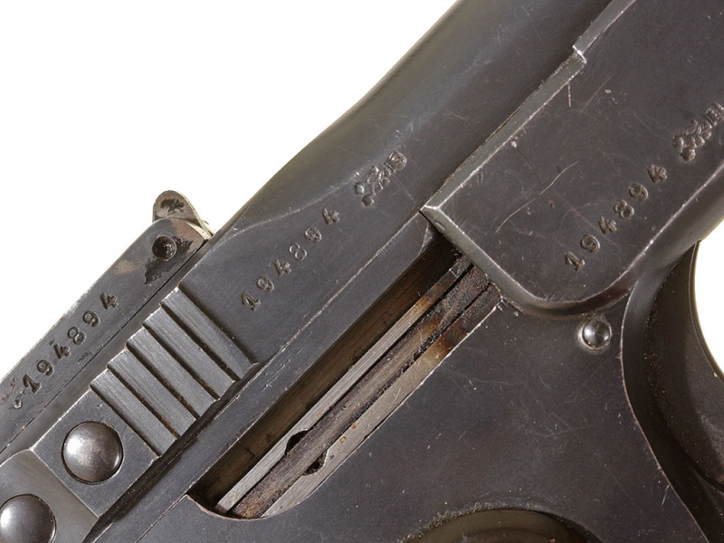 Пистолет Браунинг образца 1900 года. Очень хорошее состояние, на одном номере, оригинальное воронение.