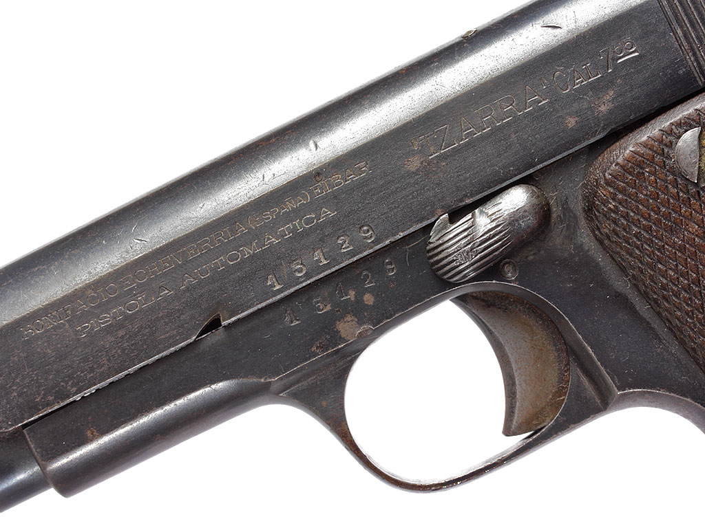 Пистолет "Изарра" калибром 7,65 мм - классический пистолет так называемого "эйбарского" типа. На одном номере. Оригинальное воронение.