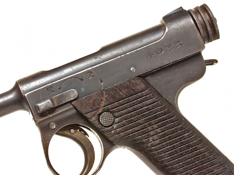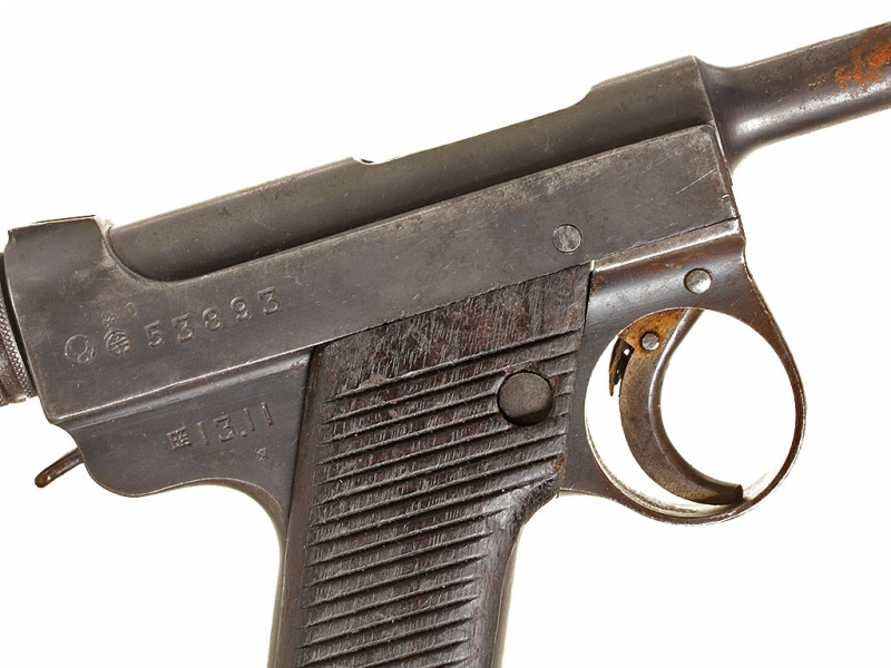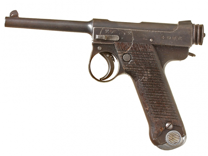 Основной пистолет японских вооруженных сил периода Второй мировой войны - Намбу Тип 14, изготовленный арсеналом Нагоя до модернизации 1940 года. Очень хорошее состояние, в оригинальном воронении.