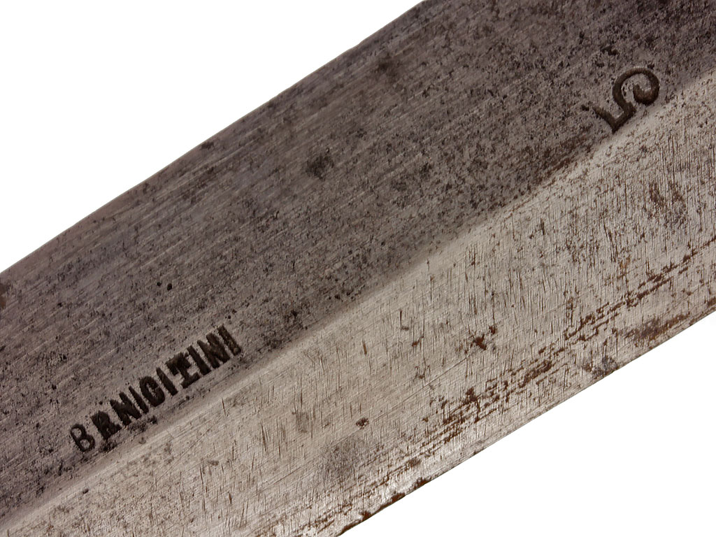 Клинок прямой, ромбического сечения, без долов. На лицевой стороне клинка имеется клеймо "BR NICITINI" и дополнительное клеймо с указанием размера клинка "5".