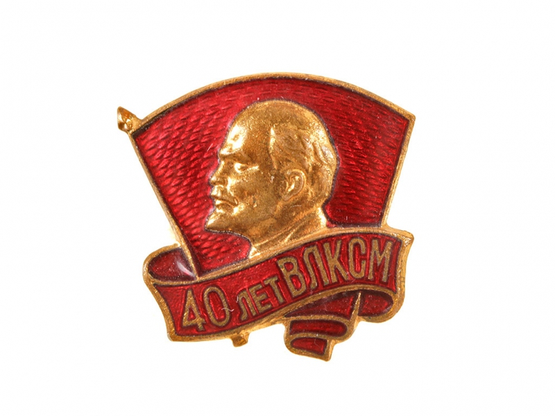 Юбилейный значок ЦК ВЛКСМ "40 лет ВЛКСМ". 1958 год, Московский монетный двор. Томпак, эмаль.