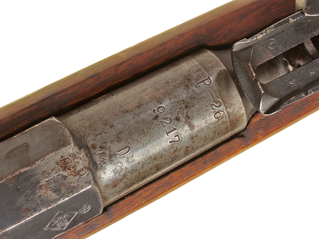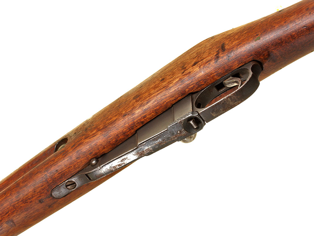 Винтовка системы Мосина (пехотный вариант). Оригинальные клейма убраны во время эксплуатации в финской армии. На представленном экземпляре большое количество финских армейских клейм (SA), в обязательном порядке ставившегося в межвоенный период на все финское армейское имущество. Винтовка также могла использоваться в годы Второй мировой войны в германских подразделениях, тесно взаимодействовавших с финнами и зачастую получавших боепитание с финских складов (к примеру, дивизия СС "Nord").