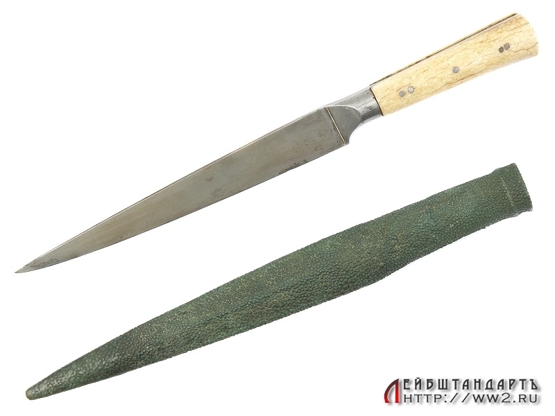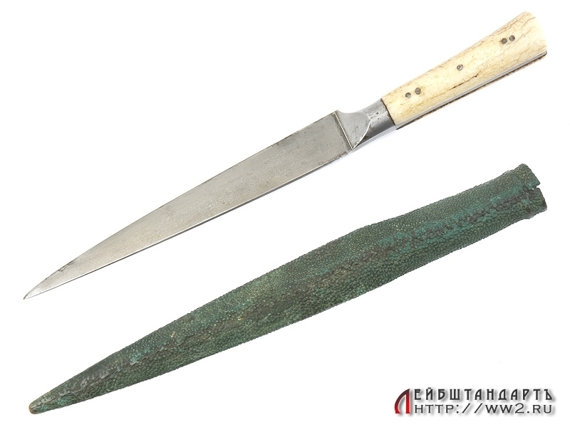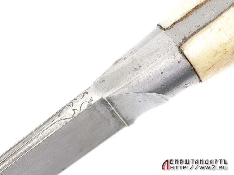 Традиционный иранский нож - кард с клинком из булатной стали, общей длиной 35,4 см. Изготовлен в первой половине ХIХ века. Отличное состояние.