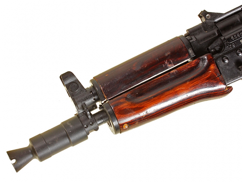 В середине 70-х был разработан принципиально новый вид семейства АК — укороченный автомат АКС74У. Ствол этого автомата уменьшили до 200-мм, соответственно снизилась как начальная скорость пули, так и прицельная дальность. АКС 74 У не «прошел» в ВДВ из-за, опять же, малой прицельной дальности, но зато компактность оружия была удобна для экипажей боевых машин, связистов, саперов, подразделений, выполняющих спецзадания.