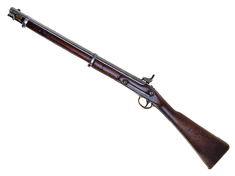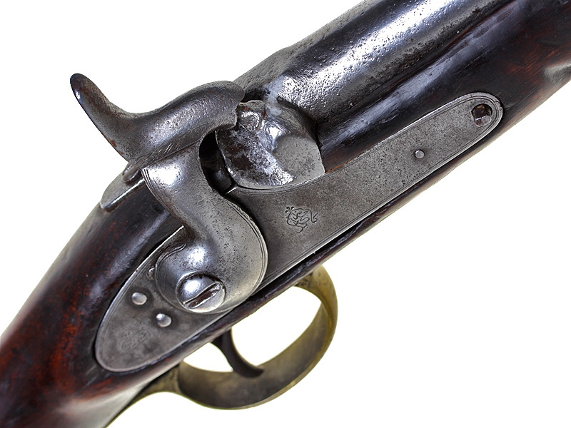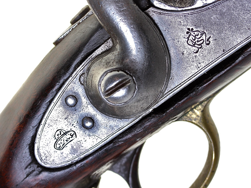 Гладкоствольное капсюльное кавалерийское ружье (карабин), изготовленное, вероятнее всего, во Франции по персидскому военному заказу. Ствол гладкий, с нерегулируемым прицелом; шомпол у дульного среза зафиксирован специальной страховочной скобой во избежание его утери при перезаряжании на скаку. На замке имеется два гравированных арабографичных клейма. На кольце - клеймо в виде буквы "В" с годом выпуска - (18)34. Скоба и затыльник приклада латунные.