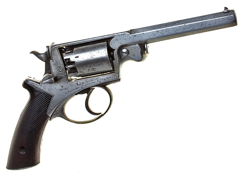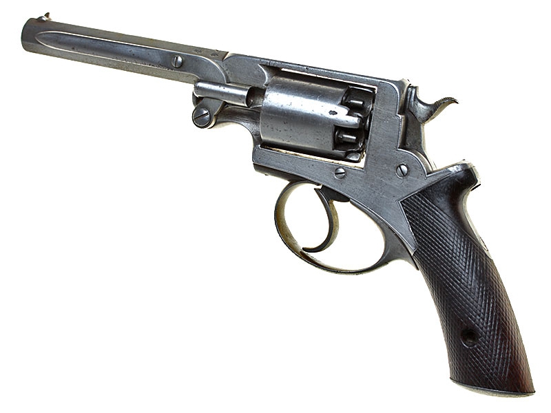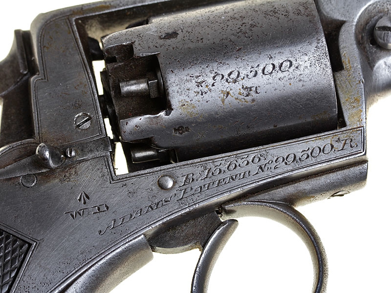 Стандартный английский капсульный пятизарядный револьвер Адамса, изготовленный для армейских нужд в 1850-е годы. Ствол, рамка и рукоятка револьвера Адамса представляют собой единое целое, чем в первую очередь и отличается от популярных в тот период револьверов Кольта.