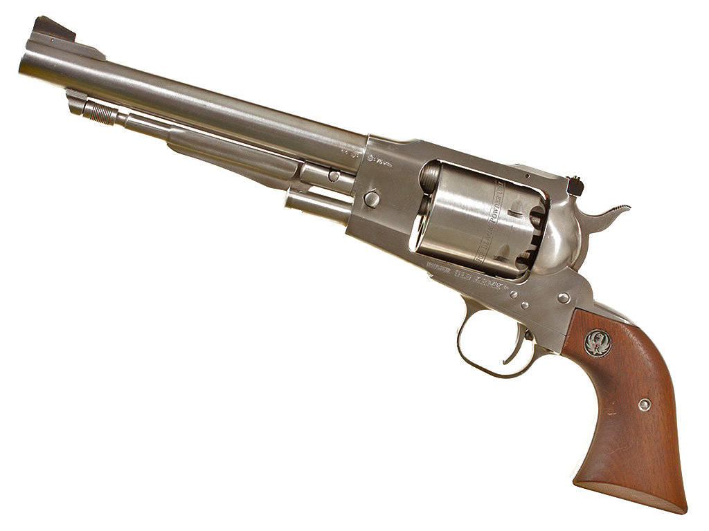 Шестизарядный капсюльный револьвер Ругер калибра .44. Отличное состояние, полностью изготовлен из нержавеющей стали.