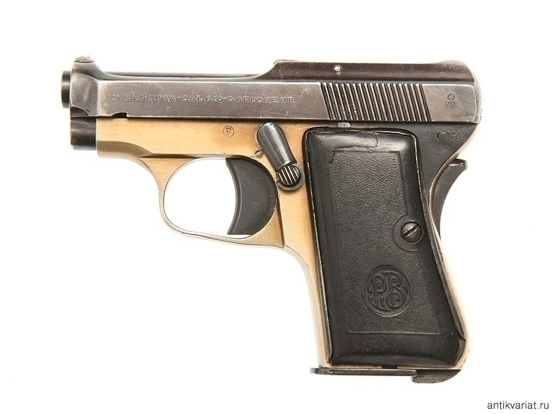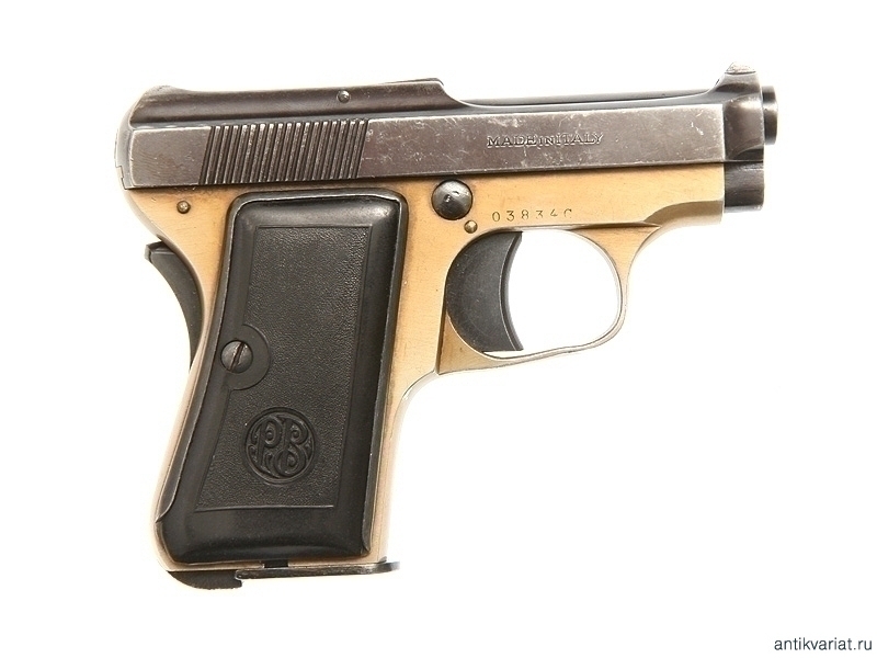Пистолет системы Беретта выпуска 1950-х годов. Компактная карманная модель, самая миниатюрная из всех выпущенных данной фирмой. Размер пистолета - всего 11,7 х 8,7 х 2,3 см. Рамка из легкого металла, калибр 6,35. Очень хорошее состояние.