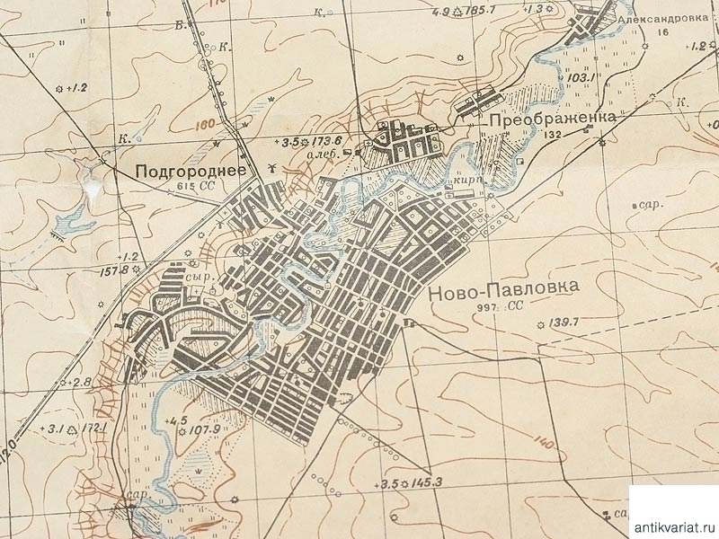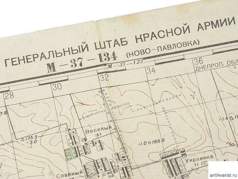 Топографическая карта района села Ново-Павловка, изданная Генеральным Штабом РККА под грифом "Для служебного пользования" в 1941 году, по карте издания 1939 года с использованием материала на июль месяц 1941 года. Очень хорошее состояние.