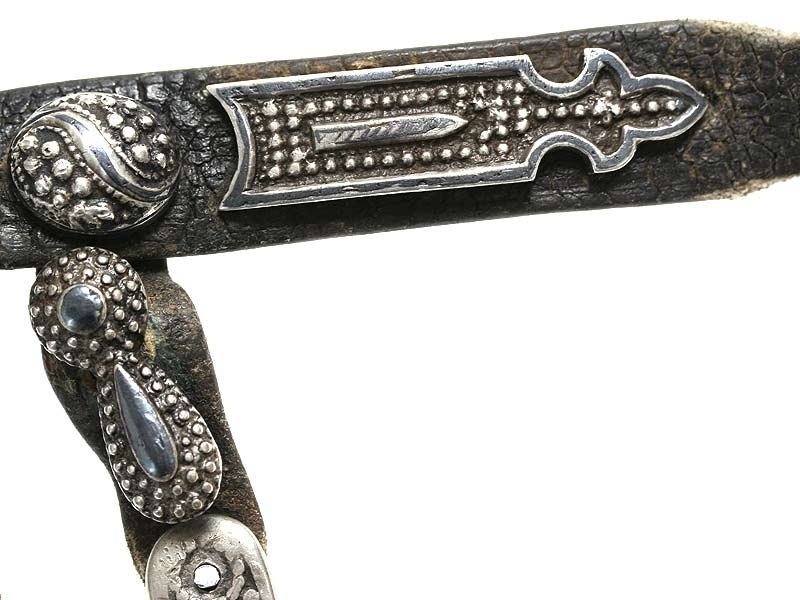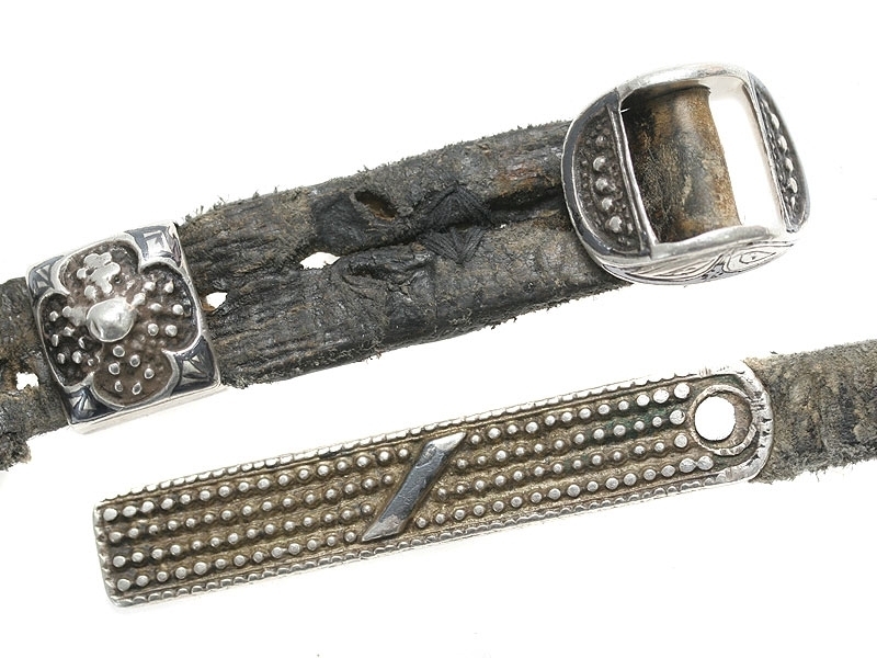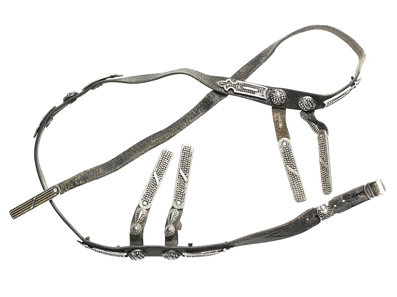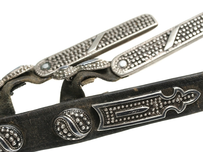 Кавказский традиционный пояс с накладными серебряными элементами, украшенными в традиционном стиле - чернью, зернью, чеканкой, гравировкой. Частично сохранилась оригинальная позолота.