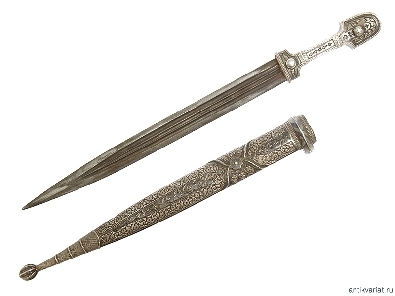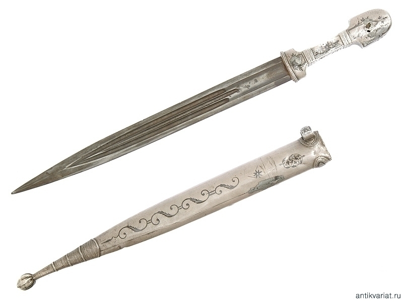 Кинжал кавказский в качественной полностью серебряной оправе. Рубеж 19-20 веков.