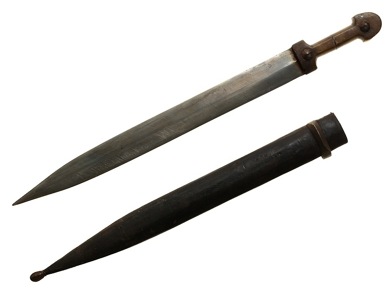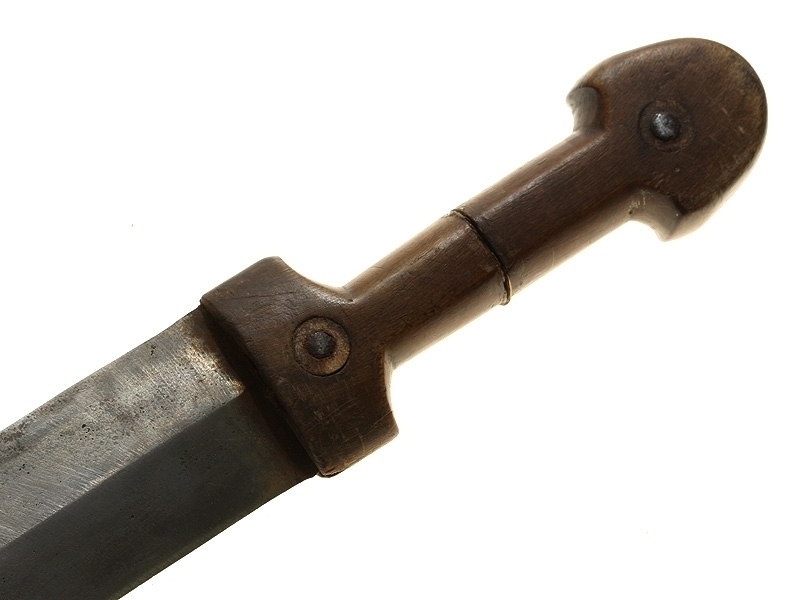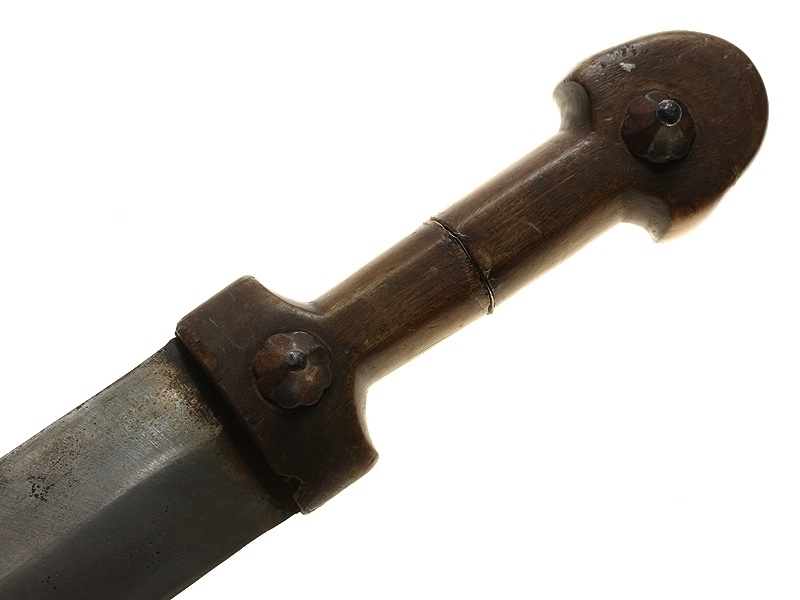 Кинжал казачий работы кавказских мастеров конца XIX - начала ХХ века. Клинок ромбического сечения, без клейм. Рукоять самшитовая, со стальными гранеными заклепками. Ножны деревянные, обтянутые кожей, со стальным кольцом на устье и наконечником.