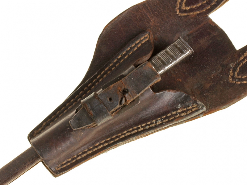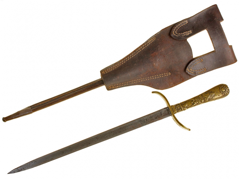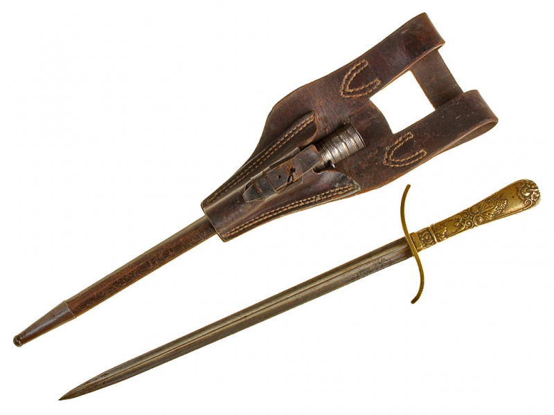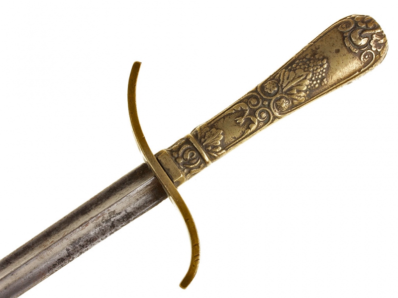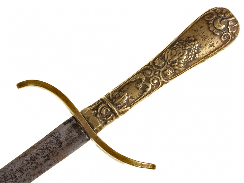 Кинжал стилетного типа офицеров Уругвайского торгового флота, изготовленный в середине - второй половине XIX века. Клинок трехгранного сечения, без клейм. Рукоять бронзовая, украшенная рельефным орнаментом, с бронзовой гардой. Ножны кожаные, с посеребренным устьем и стальным наконечником. Кортик имеет широкий двухлопастной подвес своеобразной конструкции.