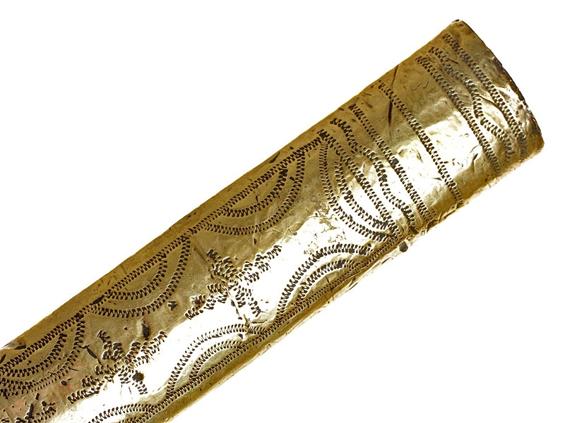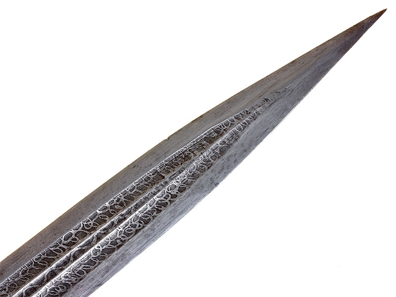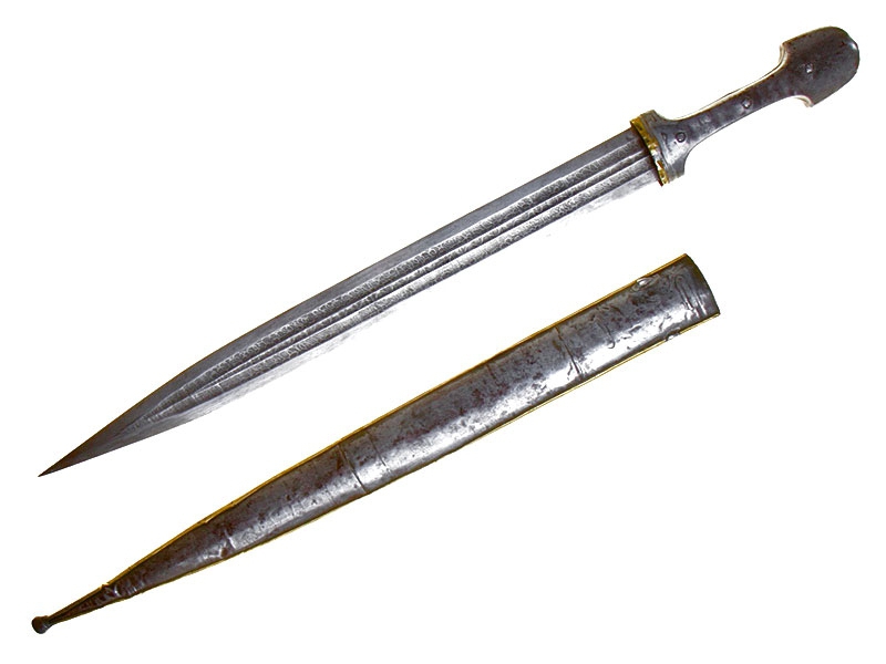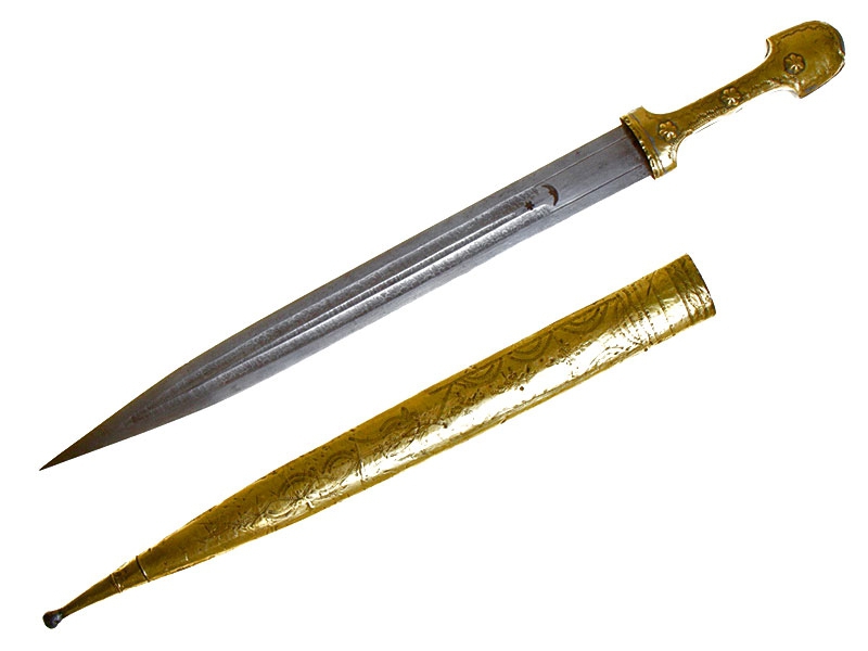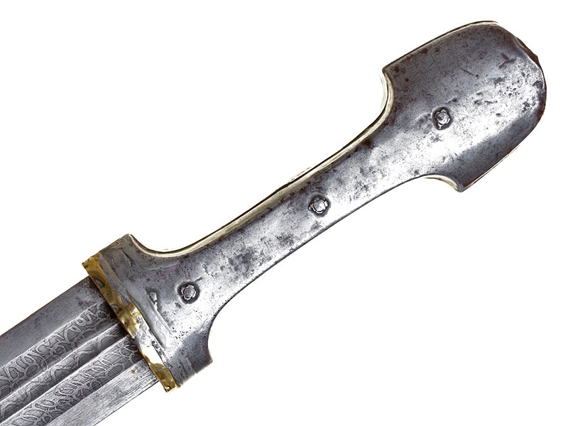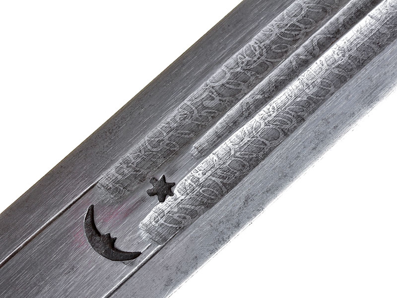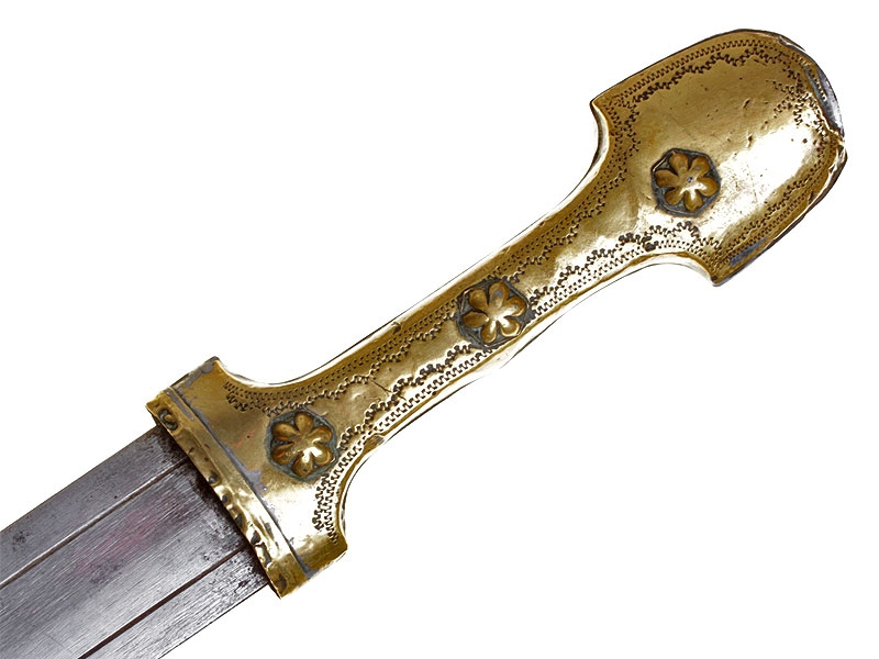 Турецкий кинжал, изготовленный во второй половине XIX века. Клинок с двумя широкими и одним узким долом, украшен травлением. Имеется клеймо в виде полумесяца с шестиконечной звездой. Рукоять целиком обложена металлом, с лицевой стороны золоченая, с тремя фигурными заклепками. Ножны также металлические, с лицевой стороны обложены золоченой латунью, украшены гравированным орнаментом.
