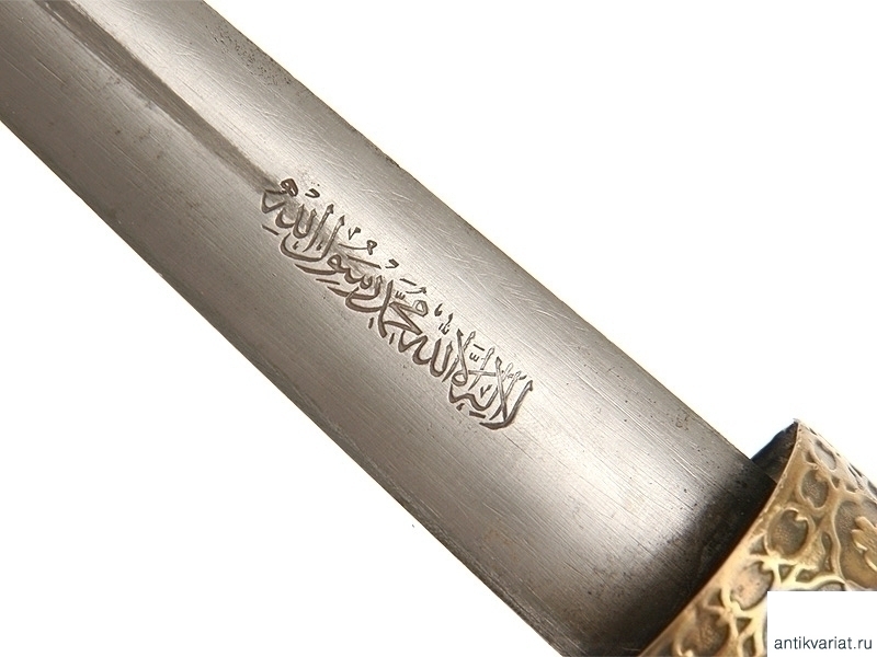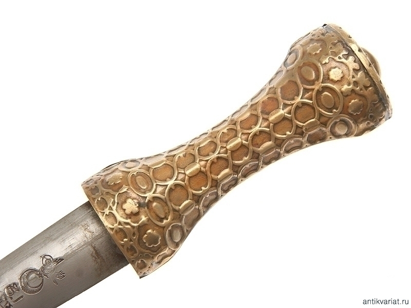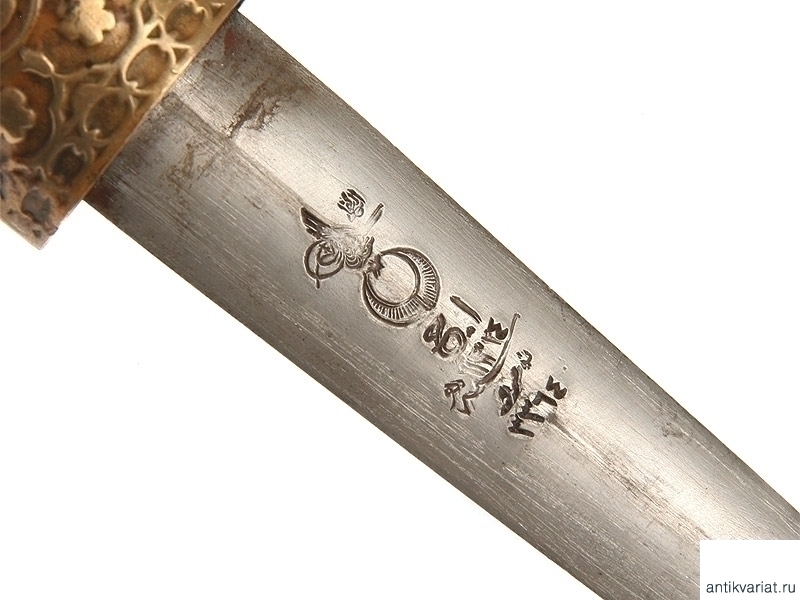 На клинке арабские надписи с одной стороны, с другой - султанская тугра, полумесяц и дата.