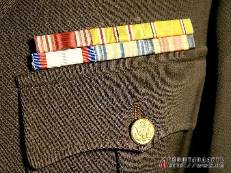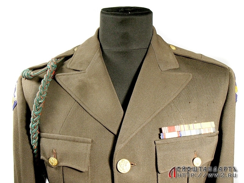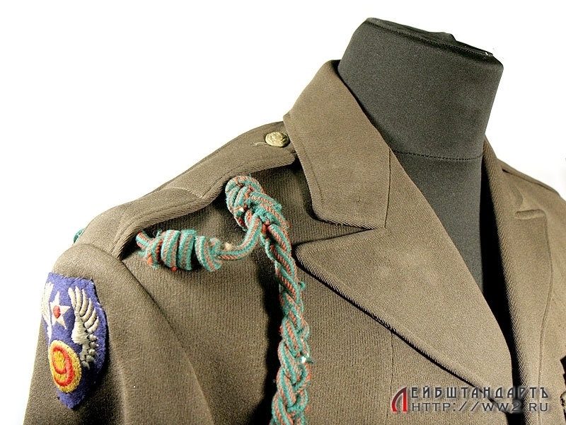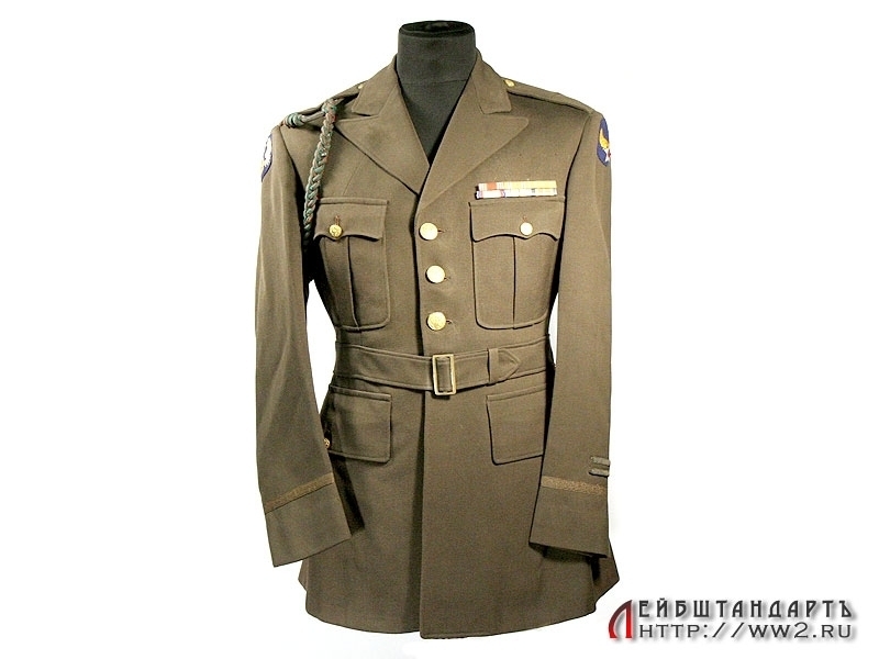 Китель американского офицера ВВС выпуска середины - второй половины 1940-х годов в очень хорошем состоянии. Сохранились наградные колодки и нарукавные нашивки с аксельбантом, отсутствуют только петлички "US". Размер примерно 48 - 50.