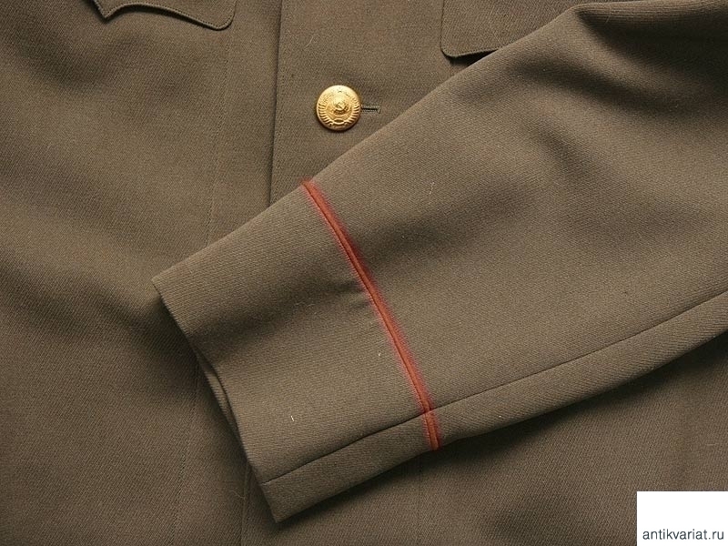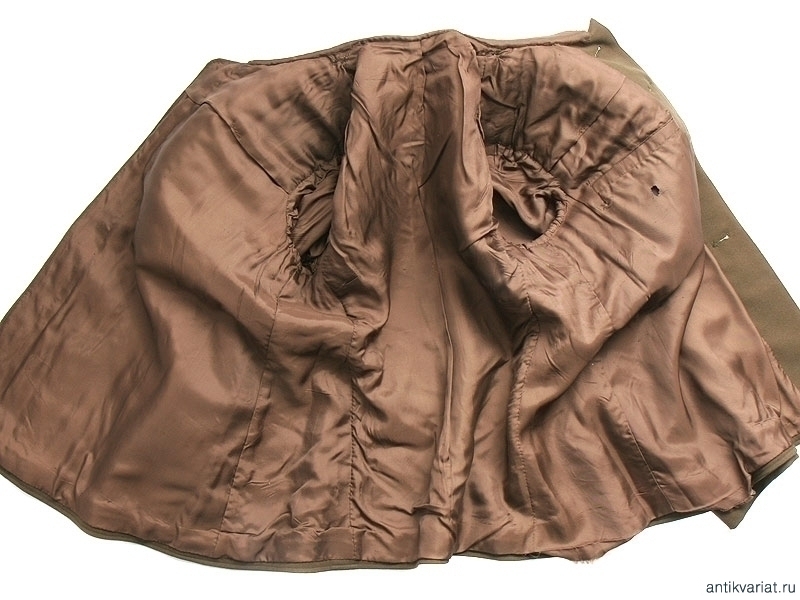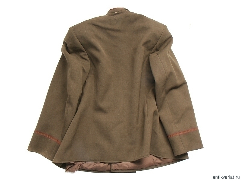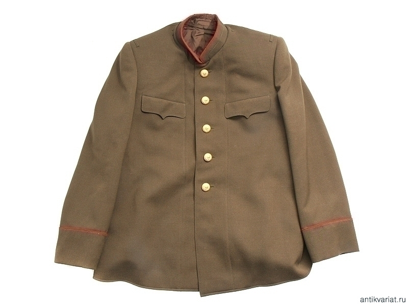Китель генеральский полушерстяной образца 1943 года со стоячим воротником. Пуговицы позолоченные с гербом СССР, погоны отсутствуют. Пошит в конце 1940-х годов.