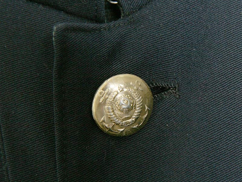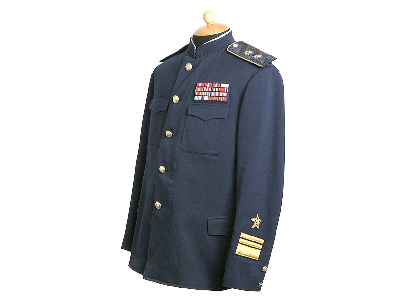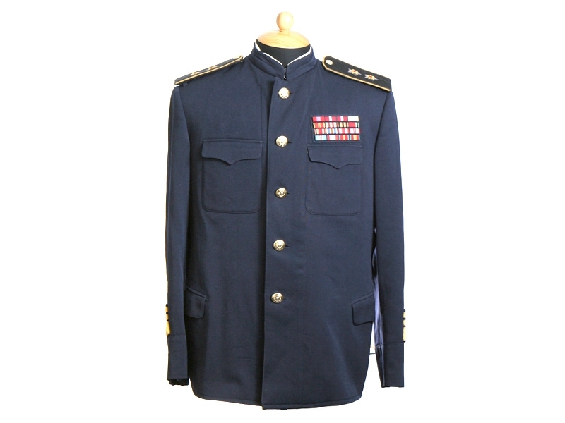 Китель вице-адмирала военно-морского флота, 1950-е годы. Из темно-синей ткани, со стоячим воротником. Погоны и пуговицы установлены владельцем в начале 1970-х годов. На груди пришита наградная колодка. Размер примерно 50 - 52, 4 рост.