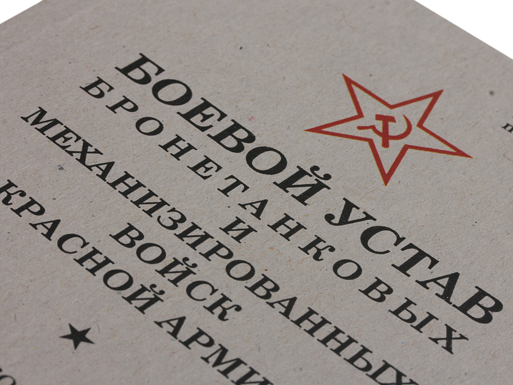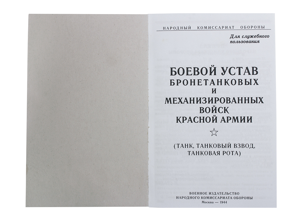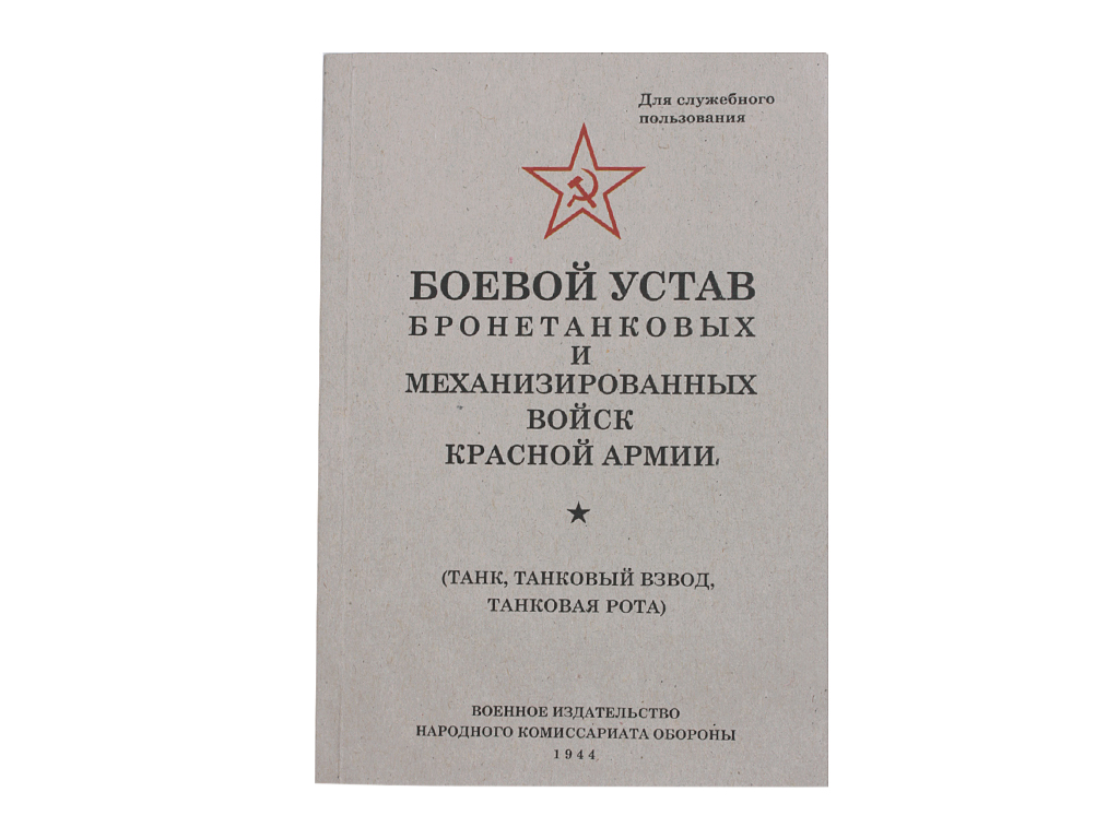 Современный репринт книги "Боевой устав бронетанковых и механизированных войск Красной Армии (танк, танковый взвод, танковая рота)", выпущенной Военным издательством НКО в Москве в 1944 году.