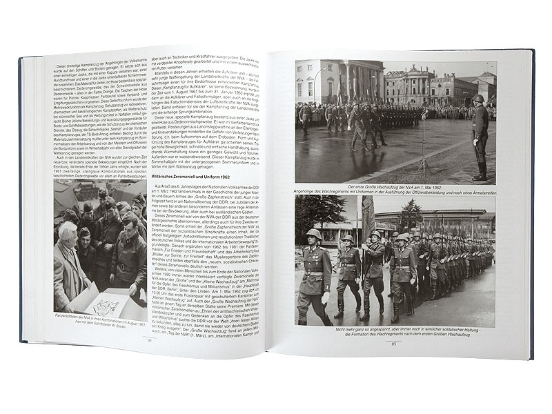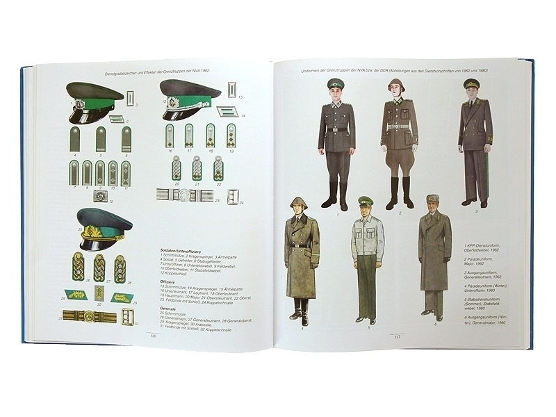 Более 600 фотографий, ветных иллюстраций, схем и таблиц, а также 236 страниц текста рассказывающие о всех вариантах военной формы, экипировки, наград и заков различия армии ГДР начиная с 1949 годо и по 1990 год.