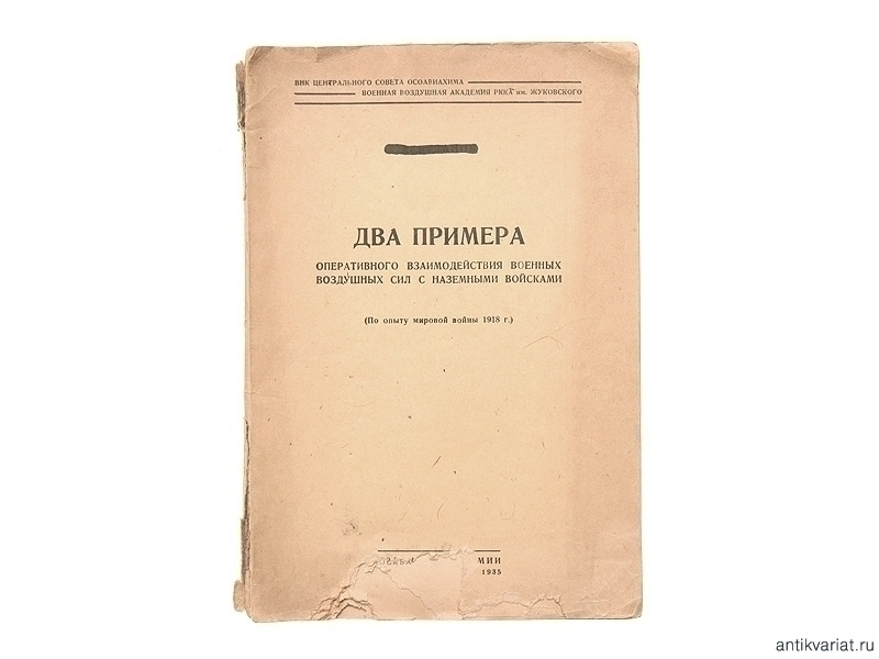 Книга "Два примера оперативного взаимодействия военных воздушных сил с наземными войсками (по опыту мировой войны 1918 г.)". Издание Военно-Воздушной академии РККА, 1935 год.
