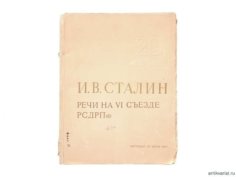 Книга "И.В.Сталин: речи на VI съезде РСДРП(б)". Партийное издательство ЦК ВКП(б), 1937 год.