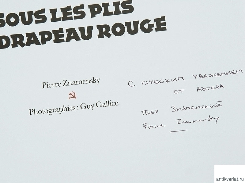 Книга Пьера Знаменского представляет собой прекрасно изданный фотоальбом, в котором подробно представлена история знамен Страны Советов с 1917 по 1991 год на примере коллекции автора. Особое внимание уделено довоенному периоду. Без преувеличения можно сказать, что это первое и наиболее полное издание по данной тематике. На французском языке. C дарственной подписью автора.