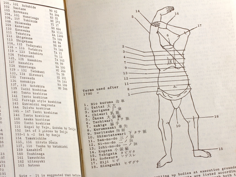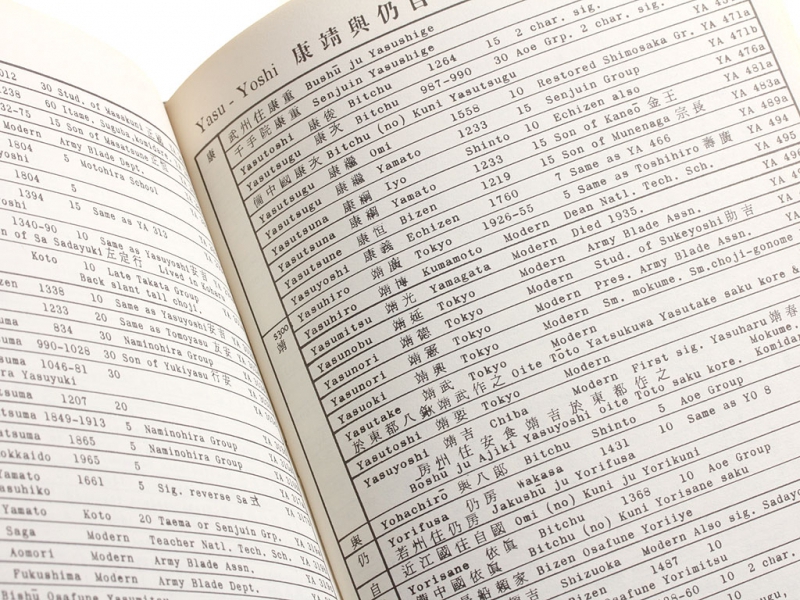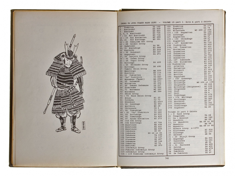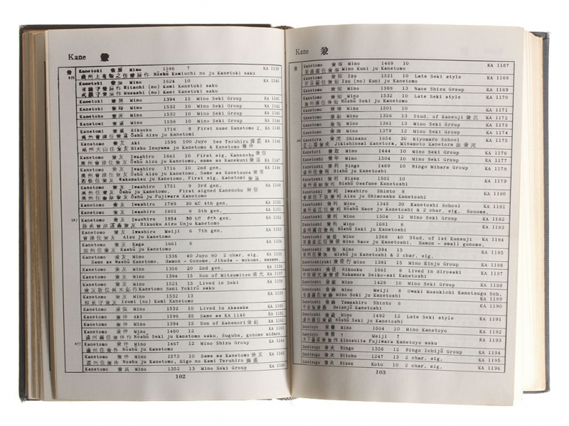 Книга "Japanese swordsmiths. 13500 names used by 12000 wordsmiths from 700 to 1900 AD". Наиболее полный справочник, содержащий 13500 имен японских кузнецов (приводится их иероглифическая подпись с переводом) за продолжительный период существования японского самурайского меча как вида оружия. Составил W.M.Hawley. 1966 год, в двух томах.