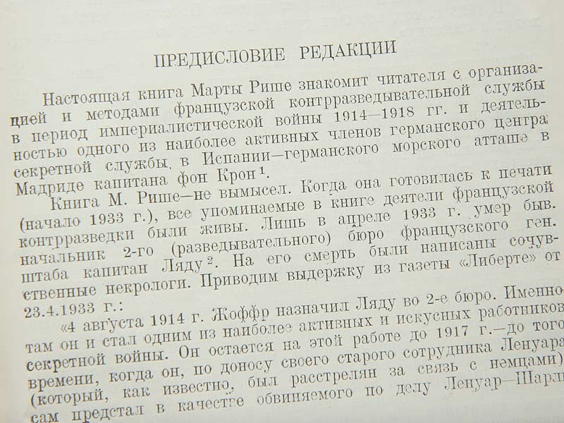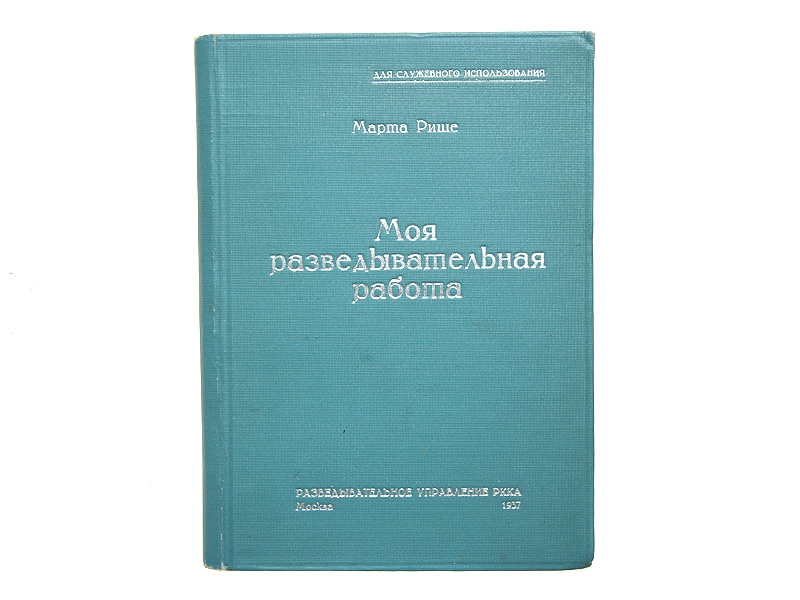 Книга Марты Рише "Моя разведывательная работа", изданная Разведывательным Управлением РККА в Москве в 1937 году под грифом "Для служебного пользования". Очень хорошее состояние.