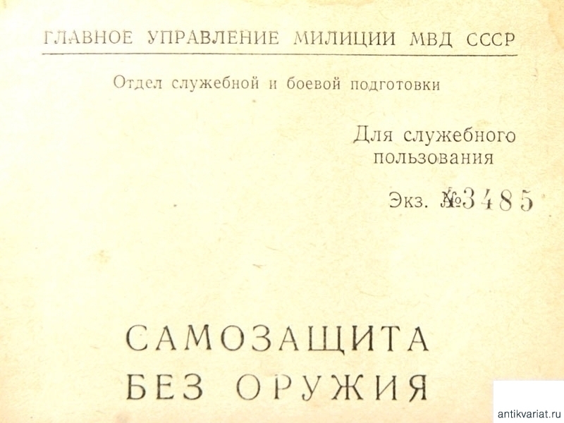 Книга "Самозащита без оружия: учебное пособие для работников милиции". Издана Главным Управлением милиции МВД СССР под грифом "Для служебного пользования", экземпляр номер 3485. Москва, 1958 год.