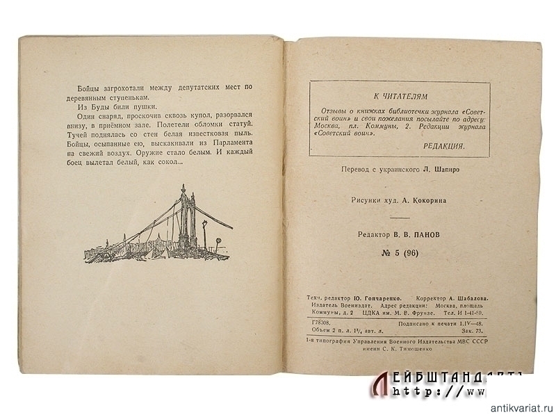 Книжка из серии "Библиотечка журнала "Советский воин" в художественной форме рассказывает о штурме Будапешта. Выпущена Военным издательством в 1948 году. Отличное состояние.